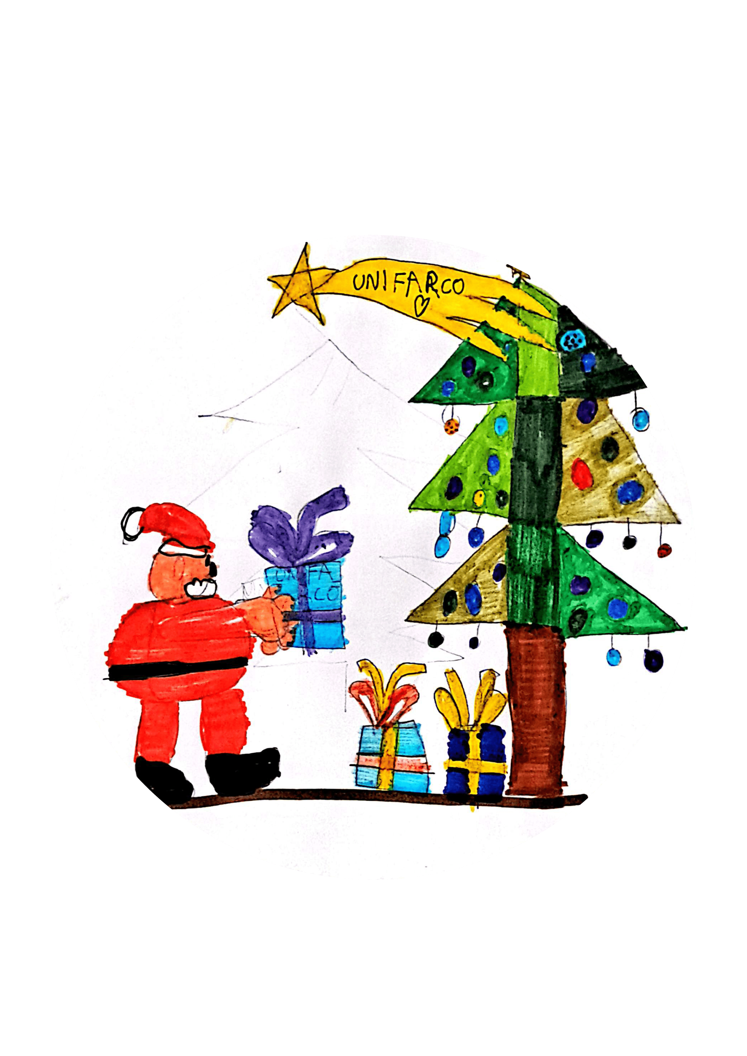 Wir haben die Kinder der Mitarbeiter der Unifarco-Gruppe gebeten, uns mit freier Fantasie von Weihnachten zu erzählen. Ihre Zeichnungen wurden dann zu den Protagonisten unserer Weihnachtsgrüße.